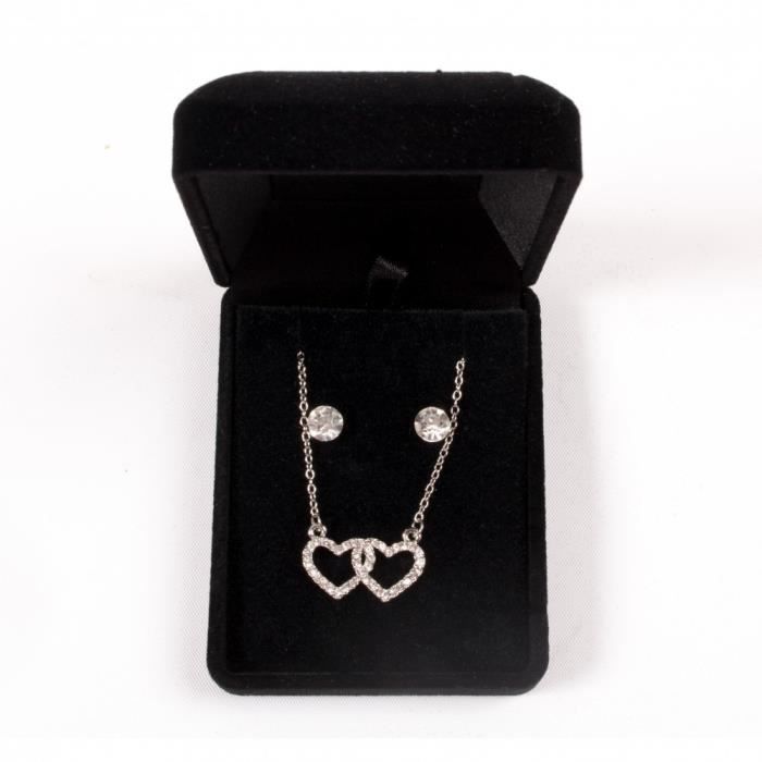 Parure De Bijoux Avec Pendentif 2 Coeurs Entrelaces Chaine Et